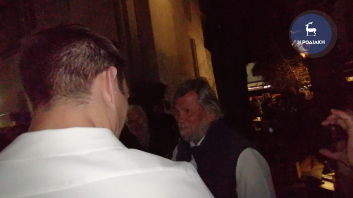 Στο χώρο της εκδήλωσης έτυχε θερμής υποδοχής από τον κόσμο που βρισκόταν εκεί ενώ ο ίδιος χαιρέτισε πρώτα τον πατέρα της υποψήφιας περιφερειάρχη, πρώην δήμαρχο Ρόδου, Νομάρχη και βουλευτή, κ. Σάββα Καραγιάννη, όπως και τη μητέρα της. Δεν παρέλειψε να χαιρετίσει και τον τέως βουλευτή Δωδεκανήσου του ΣΥΡΙΖΑ κ. Δημήτρη Γάκη.