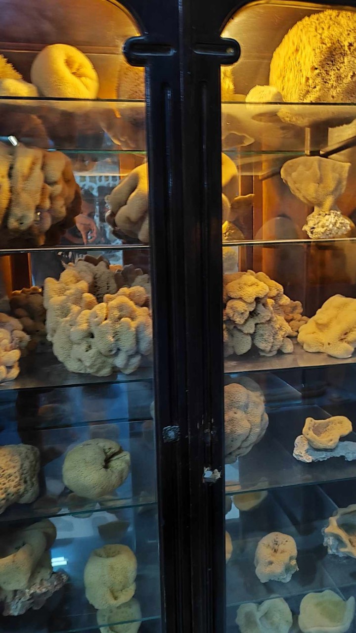 Υπάρχουν πολλά εκθέματα, σφουγγάρια όλων των ειδών, το Ιπποκράτειο κοχύλι, ένας αμφορέας της πρώιμης Εποχής του Χαλκού, αλλά και ταριχευμένα ψάρια και όστρακα.