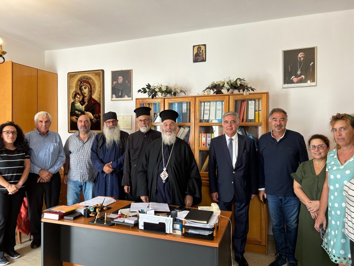 Ακολούθως επισκέφθηκε τον Ιερό Ναό της Παναγιάς της Πορταΐτισσας που έχει υποστεί σοβαρές ζημιές από την πρόσφατη πυρκαγιά και συμμετείχε σε σύσκεψη υπό τον Σεβασμιώτατο Μητροπολίτη κ.κ. Παϊσιο, τον Δήμαρχο κ. Νικόλαο Κομηνέα, την επιτροπή για την αποκατάσταση της εκκλησίας και τον εκπρόσωπο της Εφορεία Αρχαιοτήτων Δωδεκανήσου.