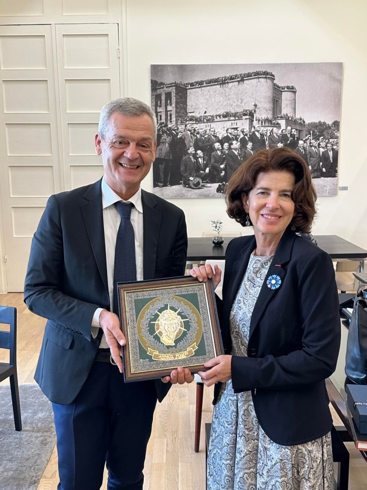 Η συνάντηση έκλεισε με την προσφορά αναμνηστικών δώρων από τον κ. Ταρασλιά στην πρέσβειρα της Γαλλίας, κα Laurence Auer.