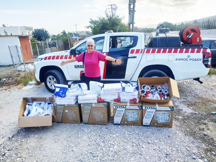 Ήρθε σε επαφή με μέλη της ΕΠΟΜΕΑ ΡΟΔΟΥ που κατοικούν στο χωριό και τους εξέφρασε την επιθυμία της να στηρίξει το έργο μας με μία μεγάλη δωρεά! Μέσα σε λίγο χρονικό διάστημα η υπόσχεσή της έγινε πράξη και αγκάλιασε την Επίλεκτη Ομάδα Ειδικών Αποστολών Ρόδου κάνοντας χορηγία υλικά, μέσα κατάσβεσης και μέσα ατομικής προστασίας!