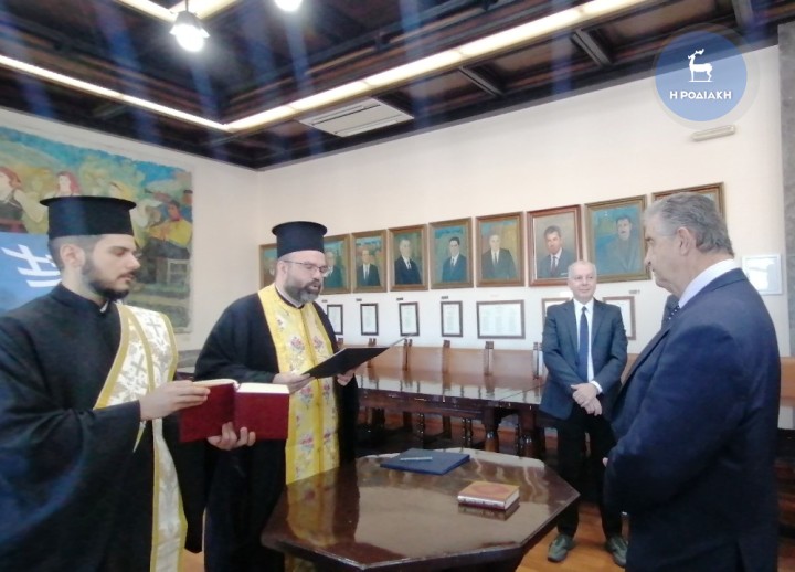 Υπό τη βαριά απώλεια του τέως δημάρχου Ρόδου, Φώτη Χατζηδιάκου, πραγματοποιήθηκε, χθες το μεσημέρι, στην αίθουσα εθιμοτυπίας του Δημαρχείου, η ορκωμοσία του κ. Γιάννη Γιαννακάκη ως του νέου μέλους που θα καθίσει στα έδρανα του δημοτικού συμβουλίου.