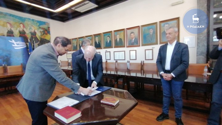 Είμαι πάρα πολύ χαρούμενος γιατί, η προσωπικότητά σας έτυχε καταρχάς μεγάλης αποδοχής από τον λαό της Ρόδου, ολόκληρου του νησιού, και πάρα πολύς κόσμος εξέφρασε με την ψήφο εμπιστοσύνης του στο πρόσωπό σας, στις τελευταίες εκλογές, την εκτίμηση που έχει σ’ εσάς, στο έργο σας και στην αγάπη που έχετε για το νησί, παρά το γεγονός ότι δεν είναι η πατρίδα σας η φυσική αλλά είναι ο τόπος που επιλέξατε να ζήσετε.