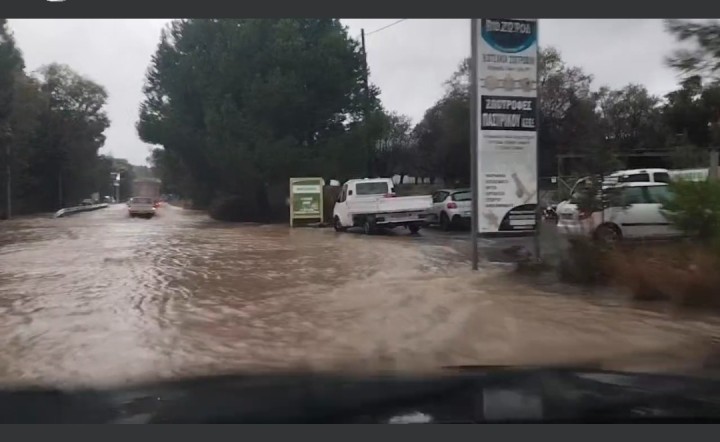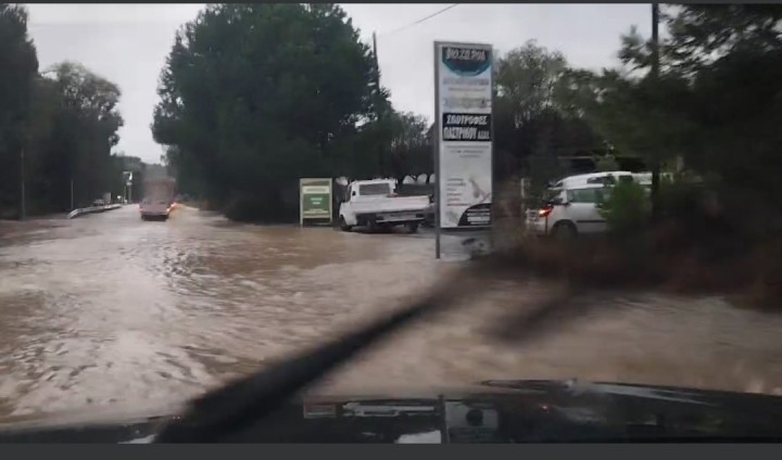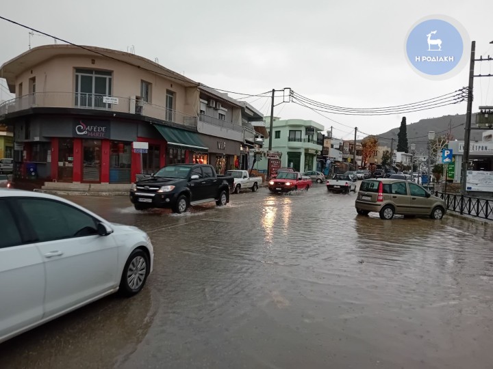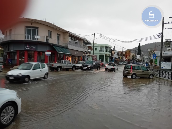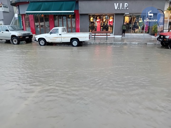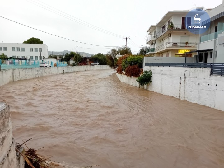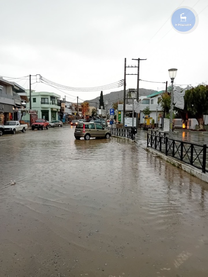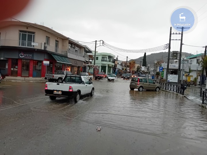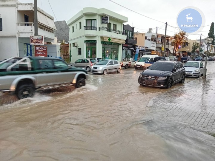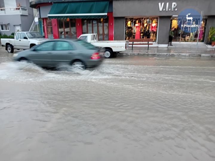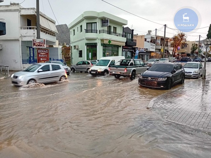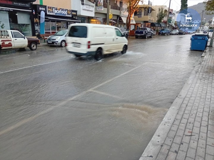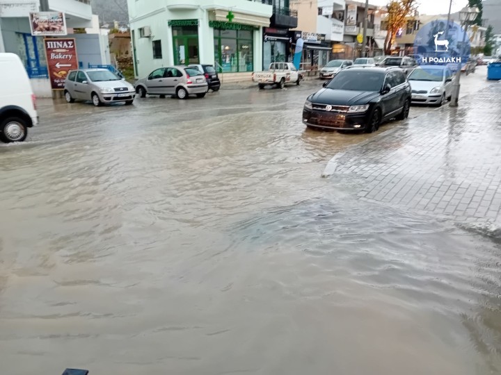 Σε ποτάμια μετέτρεψε η κακοκαιρία πολλούς δρόμους σε όλο το νησί της Ρόδου
