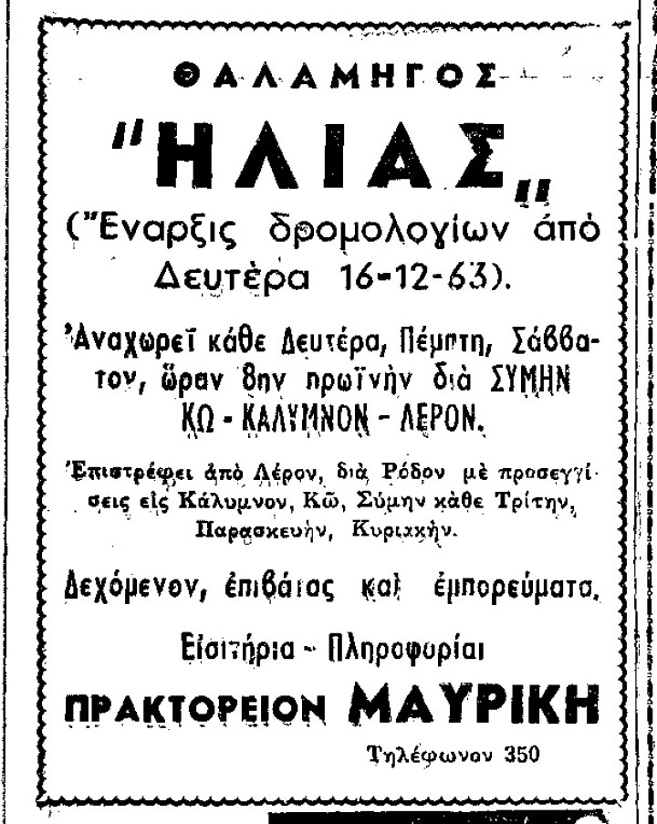 Το αλιευτικόν σκάφος «Μαρία», νηολογίου Ρόδου 93, προσήραξε χθες κατά τας πρώτας πρωινάς ώρας εις την ακτήν τη νήσου Ρόδου, έναντι του χωρίου Θολού, συνεπεία των πνεόντων ανέμων και του γεγονότος ότι ειργάζετο πλησίον της παραλίας. Ευθύς ως εγνώσθη τούτο, επελήφθη το Κεντρικόν Λιμεναρχείον Ρόδου, ο Λιμενάρχης δε πλωτάρχης Κυπριώτης διέταξε και μετέβη επί τόπου αξιωματικός του Λιμεναρχείου διά την παροχήν βοηθείας και την διενέργειαν ανακρίσεων. Διά την παροχήν βοηθείας μετέβησαν επί τόπου το θαλαμηγόν «Ηλίας» και μία άκατος του Κούριερ, προκειμένου να σύρουν και να αποκολλήσουν το προσαράξαν σκάφος.