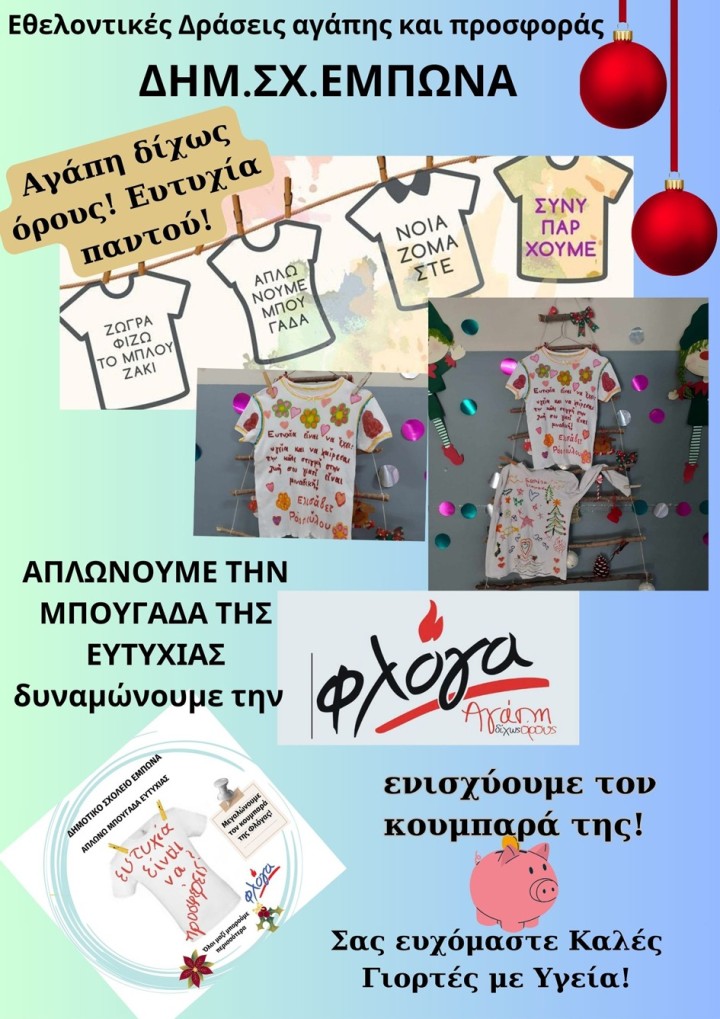 Στo πλαίσιο των στόχων του σχολείου για την προαγωγή του εθελοντισμού, του πνεύματος αλληλεγγύης, αλλά και των εργαστηρίων δεξιοτήτων για την καλλιέργεια της αλληλεγγύης και της ευαισθητοποίησης των παιδιών, το Δημοτικό Σχολείο Έμπωνα άρχισε να εκπονεί τη δράση: «Απλώνω ευτυχία - Δυναμώνω τη Φλόγα της καρδιάς».
