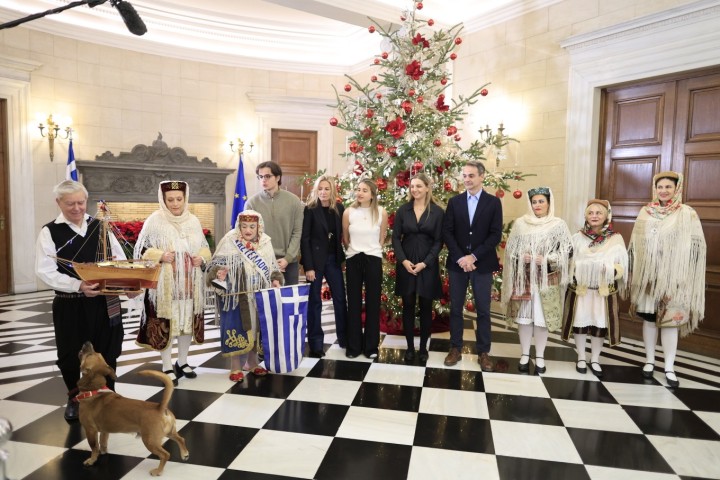 Παραδοσιακά χριστουγεννιάτικα κάλαντα είπαν στον πρωθυπουργό είπαν στον πρωθυπουργό, Κυριάκο Μητσοτάκη στο Μέγαρο Μαξίμου οι Γυναίκες από τον Πολιτιστικό Σύλλογο Καστελλρίζου, η Πανθρακική Ομοσπονδία Νότιας Ελλάδας και η Παναρκαδική Ομοσπονδία.