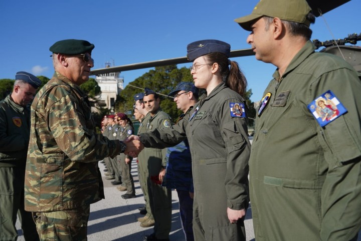 Ο αρχηγός ΓΕΕΘΑ επιθεώρησε και συναντήθηκε με πληρώματα ελικοπτέρων στη Ρόδο, με τους φρουρούς του Καστελλόριζου μας, της Στρογγύλης και της Ρω, όπου και κατέθεσε στεφάνι, στη μνήμη της παντοτινής και αιώνιας Κυράς του νησιού, της αείμνηστης Δέσποινας Αχλαδιώτη.