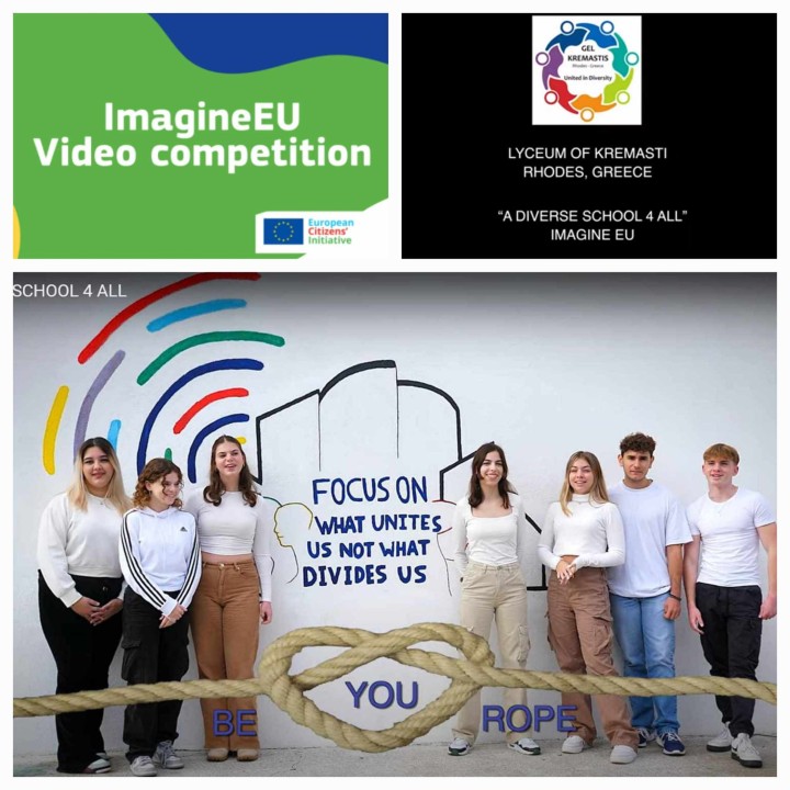 Πιο συγκεκριμένα, το Γενικό Λύκειο Κρεμαστής περί της συμμετοχής του στον Ευρωπαϊκό Διαγωνισμό “ImagineEU” αναφέρει τα εξής: «Οι μαθητές – πρέσβεις του Ευρωπαϊκού Κοινοβουλίου του ΓΕΛ Κρεμαστής δημιούργησαν ένα βίντεο με τίτλο “A DIVERSE SCHOOL 4 ALL”.