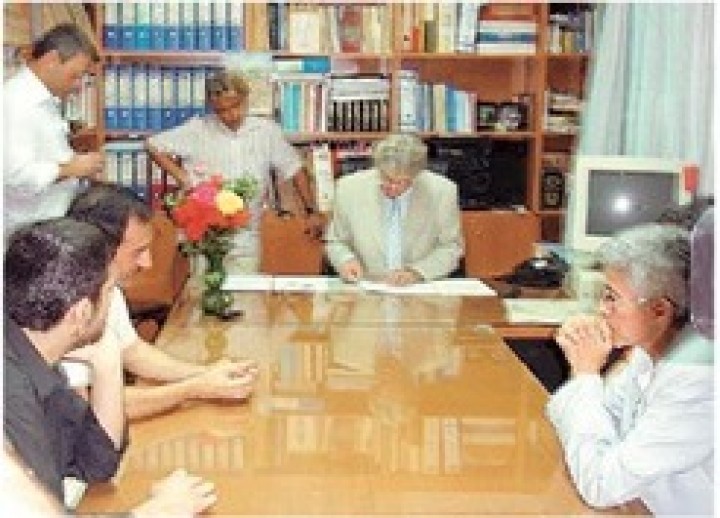 Στην αίθουσα του δημοτικού συμβουλίου επετράπη η είσοδος- ύστερα από αίτημα των ζευγαριών- του Γρηγόρη Βαλιανάτου και ενός τηλεοπτικού συνεργείου. Εγώ μπήκα στην αίθουσα παριστάνοντας τον… δημοτικό υπάλληλο (φυσικά με την έγκριση του Αλιφέρη) και με μια μικρή φωτογραφική μηχανή, κατόρθωσα να αποθανατίσω την τελετή!
