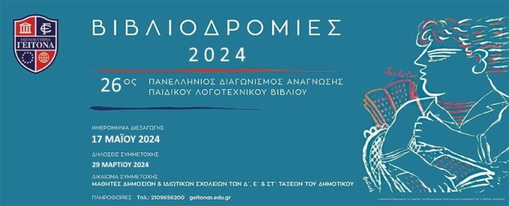 Την Παρασκευή 17 Μαΐου 2024 και ώρα 17.00 διεξάγεται στις εγκαταστάσεις του Κολλεγίου Ρόδου ο Πανελλήνιος Διαγωνισμός Βιβλιοδρομιών που αφορά τις τάξεις Δ’, Ε’ και ΣΤ’ Δημοτικού.