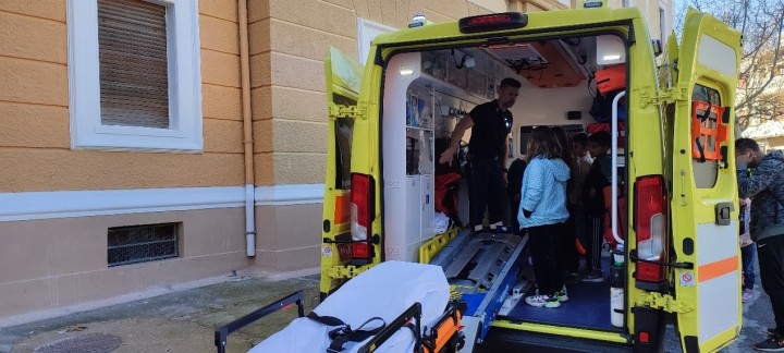 Ευχαριστούμε την ομάδα του Ε.Κ.Α.Β. Ρόδου κ.κ. Πιπερίδη Γεώργιο (δικυκλιστής του ΕΚΑΒ), Σαραντάκο Παναγιώτη (μέλος Πληρώματος Ελικοπτέρου του Ε.Κ.Α.Β.) και τον Νικηφορίδη Σταύρο (συντονιστή Πρώτων Βοηθειών του Ε.Κ.Α.Β.), που ανταποκρίθηκαν στο κάλεσμά μας και με υπομονή ενημέρωσε τους μαθητές μας πώς να προφυλάσσονται από τους καθημερινούς και απροσδόκητους κινδύνους.