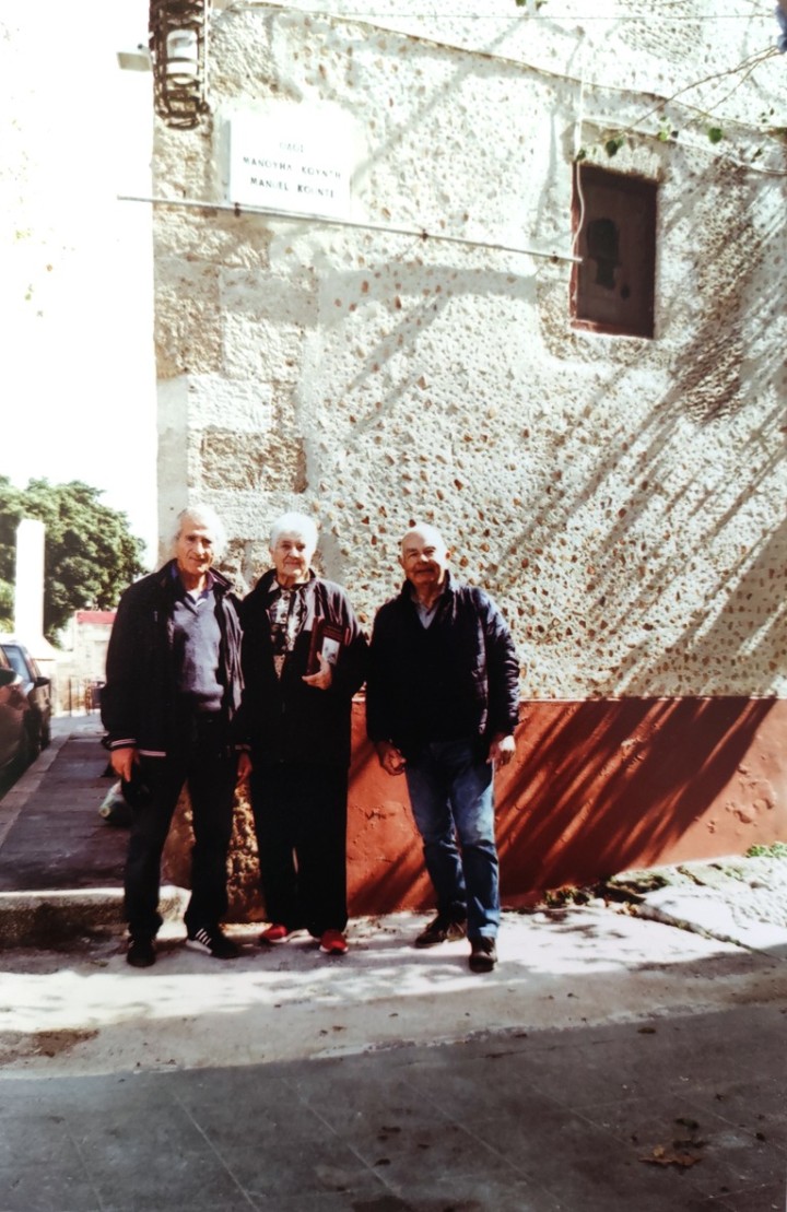 Η ψυχή του Αρχιμάστορα των Τειχών της Ρόδου, του ευεργέτη μας, Μανουήλ Κούντη, χαίρεται και είναι αιώνια, τον ευχαριστούμε». Ευδοκία (Εύα) Μπόνη Νικολοπούλου, ξεναγός. Στέλιος Αντωνίου Γιάννιας, ξεναγός, Στέφανος Εμμανουήλ Χρύσαλος, ξεναγός. Φωτογράφος: Στέλιος Α. Γιάννιας