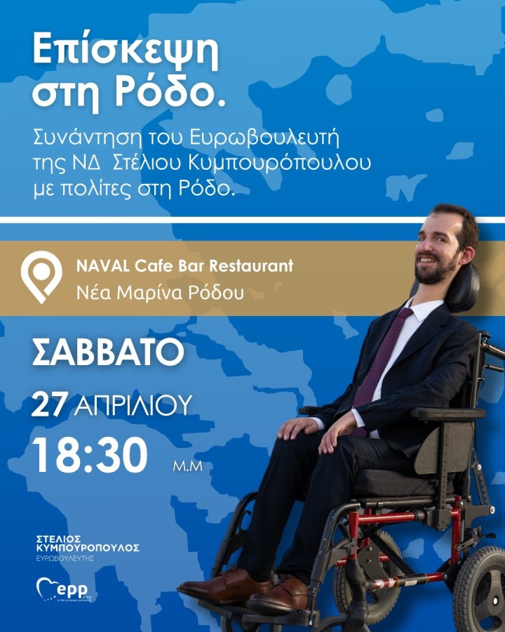 Στη Ρόδο αύριο ο Ευρωβουλευτής της ΝΔ Στέλιος Κυμπουρόπουλος