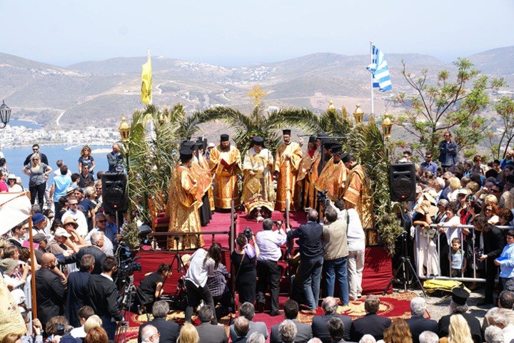 Τη Μεγάλη Παρασκευή γίνεται η αναπαράσταση της Αποκαθήλωσης στη Μονή του Αγίου Ιωάννη και το ίδιο βράδυ όλοι οι επιτάφιοι συναντιούνται στις πλατείες της Σκάλας και της Χώρας. Η Ανάσταση γίνεται επίσης στο μοναστήρι και ανήμερα του Πάσχα, διαβάζεται το Ευαγγέλιο σε επτά γλώσσες.