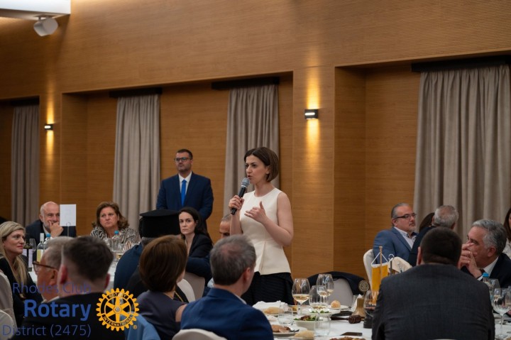 Είναι τιμή μας που ανταποκρίθηκε στην πρόσκληση μας για να μιλήσει για τη Δημόσια Υγεία. Την ευχαριστούμε και την καλούμε στο βήμα» ανέφερε ο πρόεδρος του Ροταριανού Ομίλου Ρόδου Γιάννης Χαλικιάς.