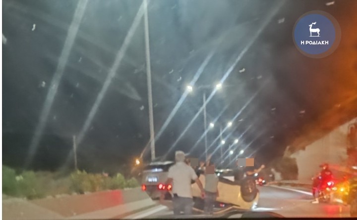 Κάτω από άγνωστες μέχρι στιγμής συνθήκες, Ι.Χ. αυτοκίνητο ανετράπη επί της Ρόδου-Λίνδου.
