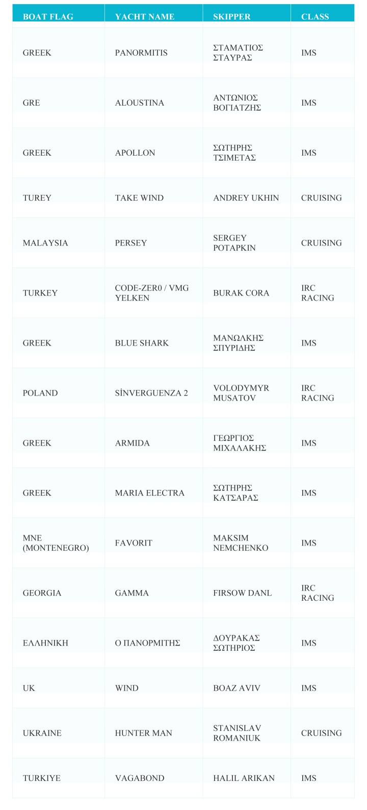 *Μέχρι και χθες, οι συμμετοχές ήταν δεκαέξι και οι περισσότερες από πληρώματα του εξωτερικού.