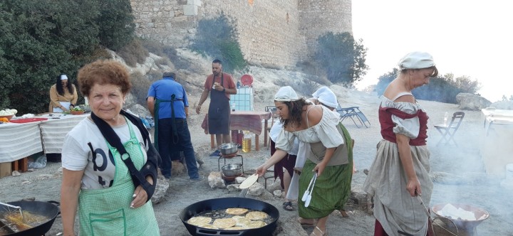 Το κάστρο λούστηκε με τον χρυσαφένιο φωτισμό του και στο μαγειρειό τα καζάνια και τα μεγάλα τηγάνια μπήκαν στις φωτιές για να γευτούν οι πολυπληθείς επισκέπτες, τουρίστες και ντόπιοι, απίστευτες μεσαιωνικές γεύσεις. Οι γυναίκες άρχισαν να πλάθουν μακαρόνια και πίτες και ο μπουφές γέμισε σύντομα με λουκούλλεια εδέσματα!