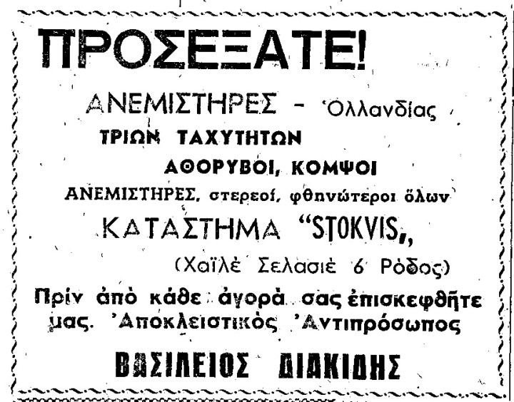 Θεωρώ καθήκον μου όπως ευχαριστήσω θερμώς όλους τους φίλους μου συμπολίτας, οι οποίοι κατά τας εκλογάς της 5ης Ιουλίου με υπεστήριξαν διά της ψήφου των και με ανέδειξαν δημοτικόν σύμβουλον Ρόδου. Χρέος μου ιερόν είναι να υπηρετήσω τα κοινά με όλην μου την θέλησιν προς το συμφέρον της πόλεως και προς χάριν του λαού, εις την διάθεσιν του οποίου θα ευρίσκωμε ανά πάσαν στιγμήν.