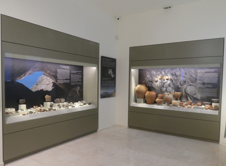 Η έκθεση αναπτύσσεται σε πέντε ενότητες, που διαρθρώνονται σε ισάριθμες αίθουσες, και καλύπτουν ένα ευρύ χρονικό φάσμα κατοίκησης του νησιού, από την Ύστερη Εποχή του Χαλκού (1600-1500 π.Χ.), την Κλασική και Ελληνιστική Περίοδο (1050 π.Χ.- 1ος αι. μ.Χ.), την Ύστερη Αρχαιότητα, τη Βυζαντινή και την Ιπποτική Περίοδο και τα Μεταβυζαντινά Χρόνια.