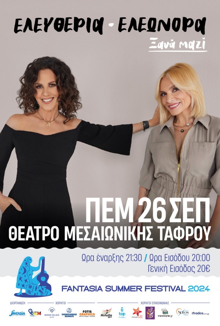 Οι πολυαγαπημένες ερμηνεύτριες που «σάρωσαν» το περασμένο καλοκαίρι, όπου κι αν εμφανίστηκαν, προξενώντας αλλεπάλληλα κύματα χαράς και ξεσηκώνοντας το κοινό, σε μια από τις τελευταίες τους κοινές συναυλίες έρχονται στη Ρόδο, αποδεχόμενες την πρόσκληση από τον Ρ/Σ Μελωδία Ρόδου 103.7, στο πλαίσιο του 11ου Fantasia Summer Festival.