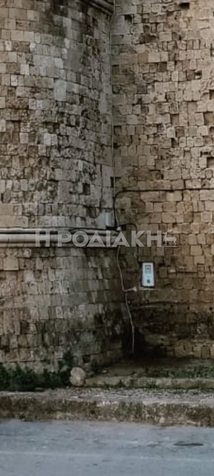 Αντιδράσεις στα μέσα κοινωνικής δικτύωσης και όχι μόνο, προκαλεί καταγραφέας ηλεκτρικού ρεύματος του ΔΕΔΔΗΕ που φαίνεται να τοποθετήθηκε πρόσφατα, επάνω στα τείχη της μεσαιωνικής πόλεως Ρόδου και μάλιστα σε κεντρικό σημείο.