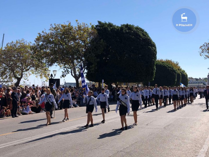 Με σύμμαχο τον πολύ καλό καιρό, πλήθος κόσμου έσπευσε στο κέντρο της πόλης της Ρόδου όπου σύλλογοι, σωματεία, σχολεία όλων των βαθμίδων και στρατός, παρέλασαν αποσπώντας το θερμότερο χειροκρότημα των συμπολιτών μας που βρέθηκαν εκεί, τιμώντας την ιστορική επέτειο του "ΟΧΙ".