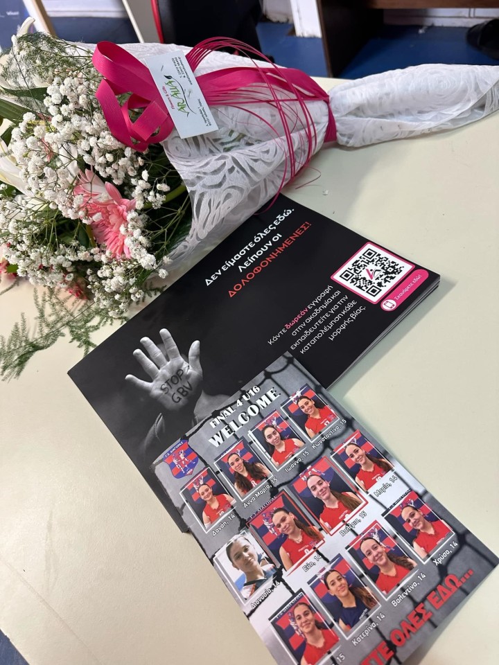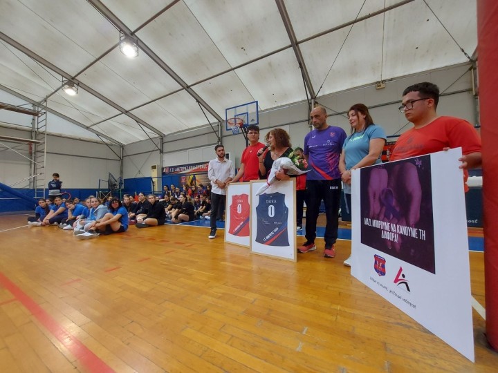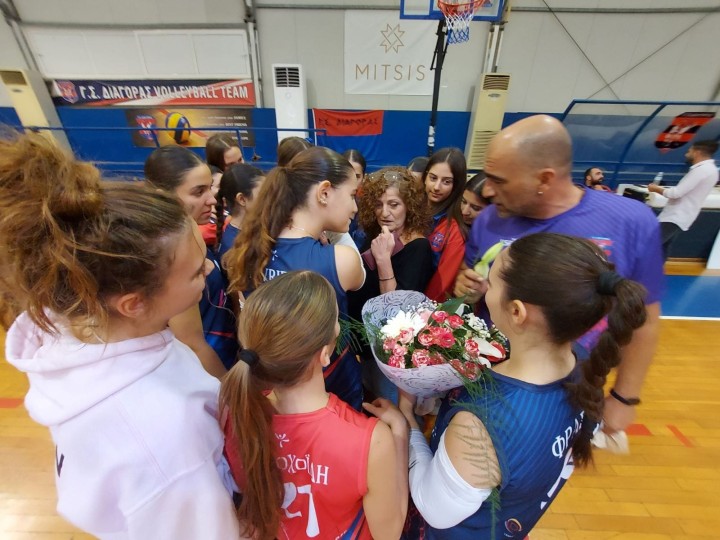 Μια συγκινητική εκδήλωση με πολλαπλά μηνύματα κατά της έμφυλης βίας πραγματοποιήθηκε την Κυριακή από τις ομάδες βόλεϊ Κορασίδων του Διαγόρα στο κλειστό της «Τέντας», αφού εκεί βρέθηκε η Κατερίνα Κώτη, μητέρα της Ντόρας Ζαχαριά που δολοφονήθηκε το 2021.