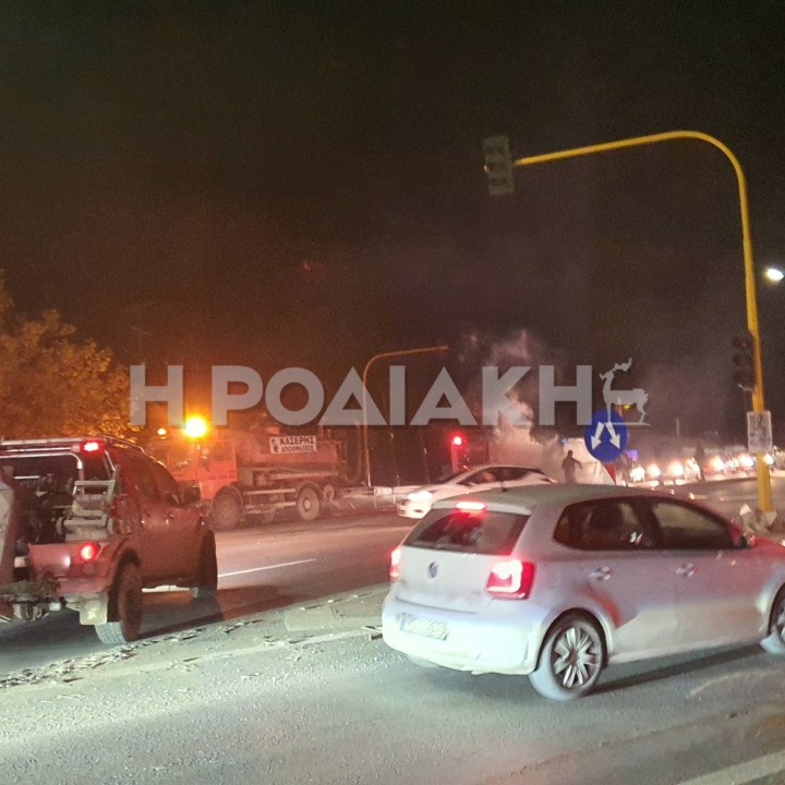 Πριν από λίγα λεπτά πήρε φωτιά αυτοκίνητο επί της Ρόδου Λίνδου στα φανάρια στη συμβολή προς Τσαΐρι.