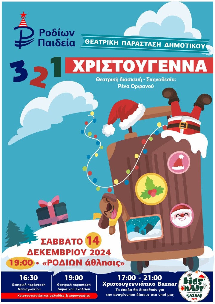 Πλούσιο πρόγραμμα ετοιμάζουν ενόψει των Χριστουγέννων ταΕκπαιδευτήρια «ΡΟΔΙΩΝ ΠΑΙΔΕΙΑ» και μας προσκαλούν σε μια μαγική χριστουγεννιάτικη εμπειρία γεμάτη θεατρική τέχνη, μουσική και δημιουργία, το Σάββατο, 14 Δεκεμβρίου 2024, στις εγκαταστάσεις του αθλητικού κέντρου «Ροδίων Άθλησις».