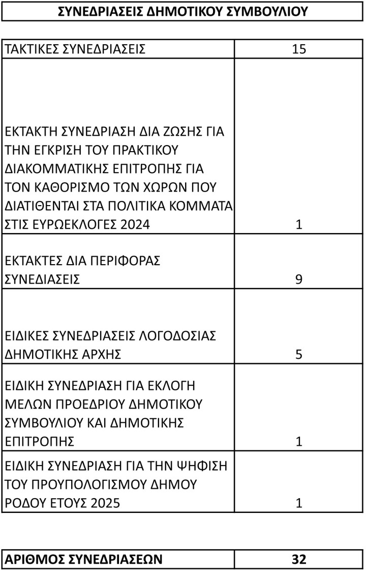 Αναλυτικά, τα στοιχεία για τη λειτουργία του δημοτικού συμβουλίου Ρόδου έχουν ως εξής: