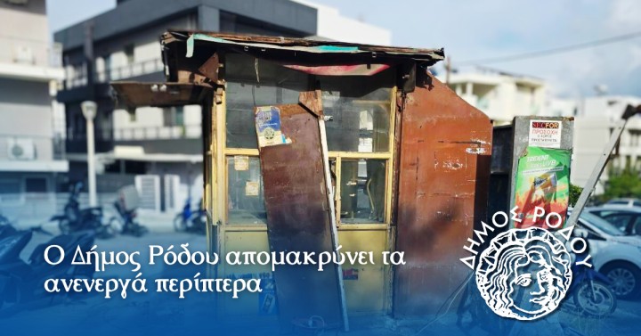 «Η Διεύθυνση Εμπορίου, Ενέργειας & Βιομηχανίας του δήμου Ρόδου, στο πλαίσιο συμμετοχής της στη συνεχή προσπάθεια αναβάθμισης των κοινόχρηστων χώρων του δήμου μας, απομάκρυνε περίπτερα που σταμάτησαν τη λειτουργία τους πριν από αρκετό χρονικό διάστημα και τα οποία καταλάμβαναν κοινόχρηστους χώρους.