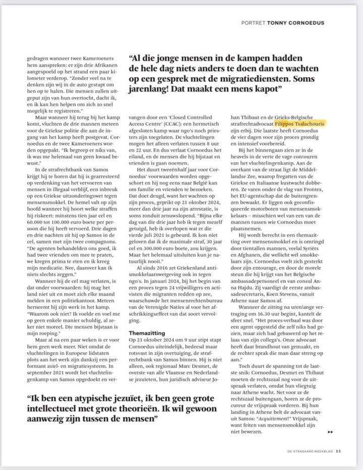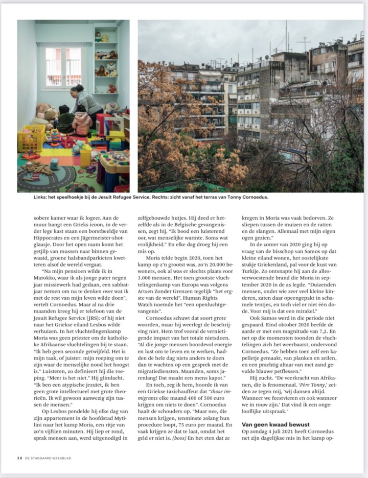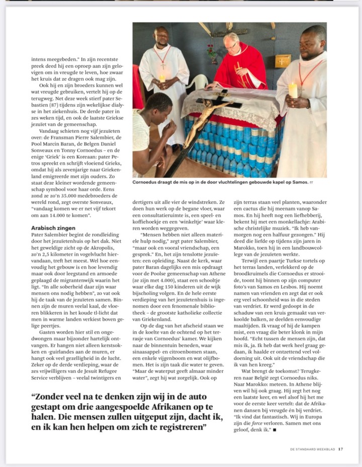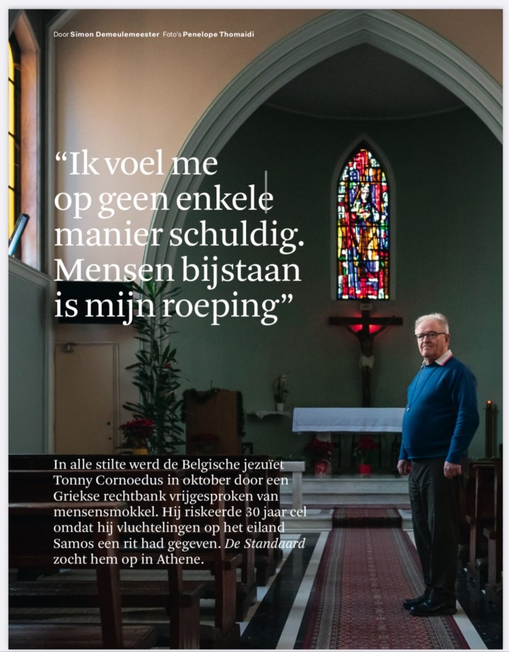 Συγκεκριμένα, η ιστορική εφημερίδα “De Standaard”, δημοσίευσε στις 18 Ιανουαρίου άρθρο, με αφορμή την αθώωση του Βέλγου Ιησουίτη ιεραπόστολου στο οποίο σκιαγραφεί το βιογραφικό του, το ποιμαντικό του έργο στην Ελλάδα, παρέχοντας στήριξη σε ηλικιωμένους Έλληνες στην Αθήνα και στους πρόσφυγες του « Κ.Υ.Τ.» Σάμου, καθώς και τις ιδέες του για το ευαίσθητο θέμα του μεταναστευτικού.