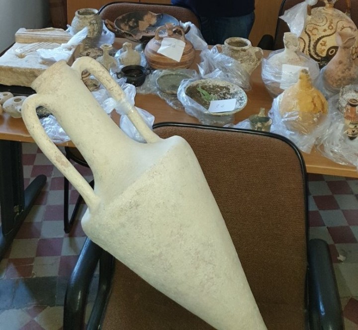 Βάσει πάντα των πληροφοριών της «Ροδιακής», συνολικά 127 αρχαιολογικά ευρήματα είχαν εντοπίσει οι αστυνομικοί, μεταξύ των οποίων κρατήρας, αμφορείς, δοχεία κ.ά., τα οποία και κατασχέθηκαν για να εκτιμηθούν από την αρμόδια υπηρεσία του υπουργείου Πολιτισμού.