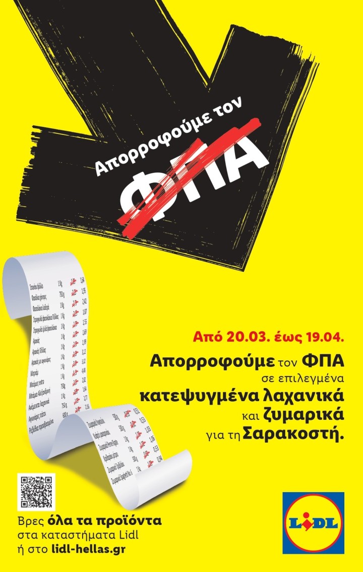 Αναγνωρίζοντας τη συνεχιζόμενη πίεση στα εισοδήματα των Ελλήνων καταναλωτών, η Lidl Ελλάς προχωρά σε μία ακόμα ουσιαστική παρέμβαση που διασφαλίζει πως οι πελάτες της μπορούν να απολαμβάνουν ποιοτικά προϊόντα στις ήδη χαμηλές τιμές της εταιρείας, χωρίς επιπλέον κόστος ΦΠΑ.