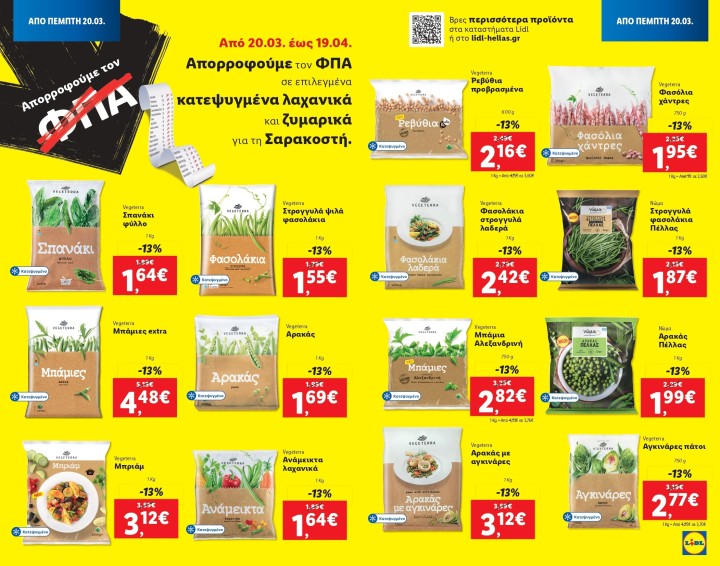 H Lidl Ελλάς απορροφά τον ΦΠΑ σε επιλεγμένα κατεψυγμένα λαχανικά και ζυμαρικά για τη Σαρακοστή