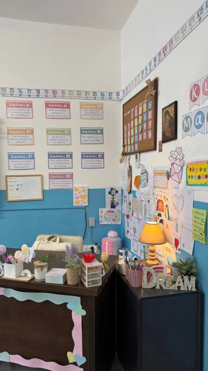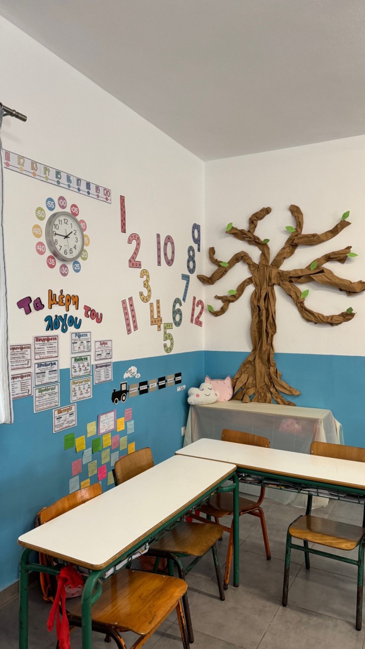 Μία τάξη πολύχρωμη αλλά και γεμάτη ουσία, έχουν καταφέρει να δημιουργήσουν η δασκάλα με τα παιδιά στη Μύκονο. Ιδιαίτερη έμφαση έχει δοθεί στις θεματικές γωνιές.