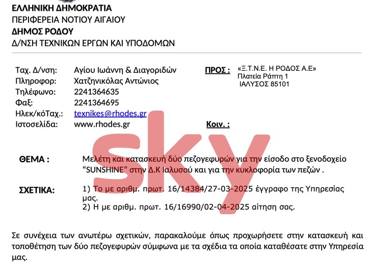 Έρευνα ζήτησε ο Δήμαρχος Ρόδου για την άδεια που έδωσαν οι τεχνικές υπηρεσίες του Δήμου Ρόδου για τη γέφυρα του ξενοδοχείου στην Ιαλυσό