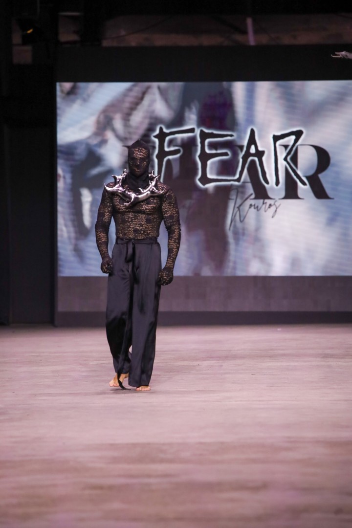 Με αυτή του τη συλλογή, ο Αγαπητός Κούρος επέλεξε – όπως μας λέει- να πάρει ένα ρίσκο: Αποφάσισε να χρησιμοποιήσει μη συμβατικά υλικά. Η πρόκληση δεν είναι απλώς να δημιουργηθεί ένδυμα, αλλά να ενσαρκωθεί συναίσθημα. Η συλλογή “Fear” είναι η προσπάθεια να βρεθεί νόημα στο χάος και ο φόβος να κοιτάξει κατάματα τον εαυτό του.