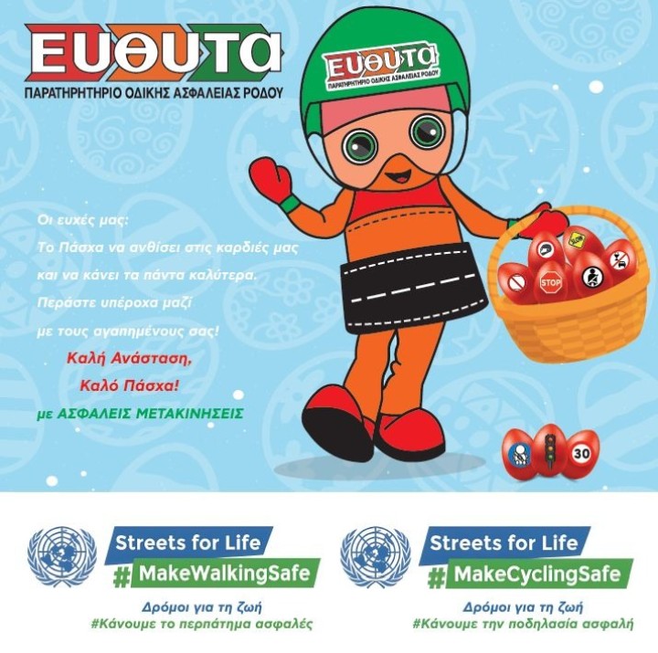 Η ΕΥΘΥΤΑ ΡΟΔΟΥ, για δέκα τέταρτη (15 ) χρονιά στην πλατεία Κύπρου στις 12:00 θα μοιράσει την Μεγάλη Πέμπτη, πασχαλινές λαμπάδες, έντυπα και αλκοτέστ μιας χρήσης στους οδηγούς και θα ανταλλάξει ευχές και μηνύματα για ασφαλείς διαδρομές.