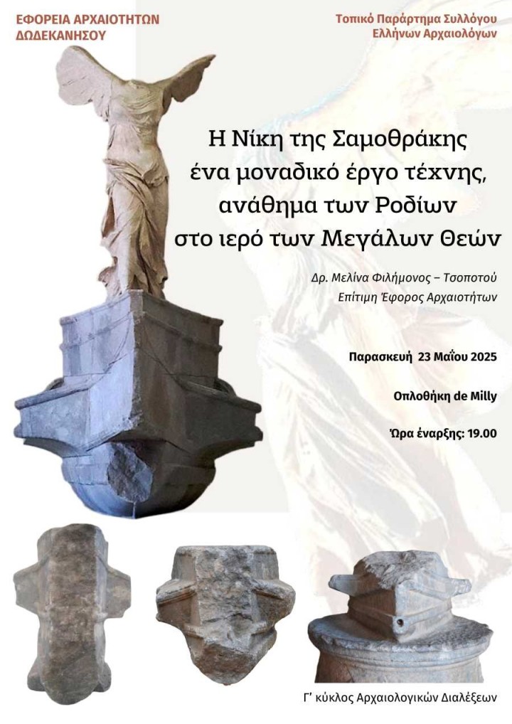 Η ομιλία αναμένεται να φωτίσει πτυχές της δημιουργίας, της ιστορικής σημασίας και της καλλιτεχνικής μοναδικότητας της περίφημης Νίκης της Σαμοθράκης, ενός αγάλματος-συμβόλου του ελληνικού μεγαλείου και της ναυτικής υπεροχής των Ροδίων στην ελληνιστική περίοδο.