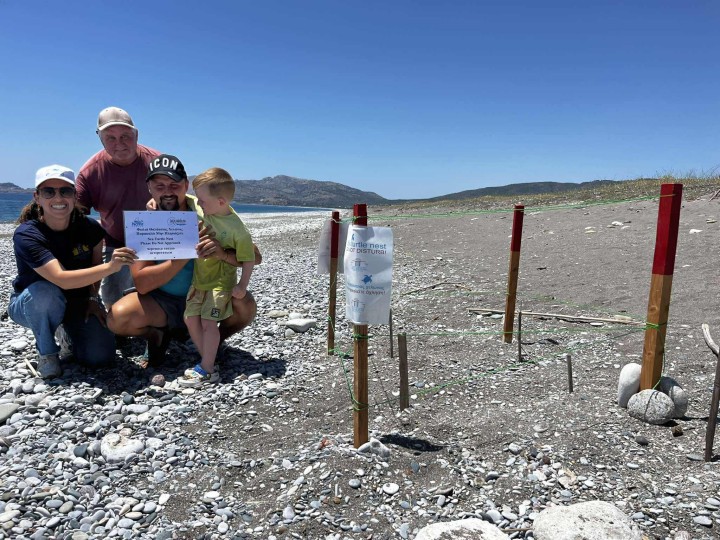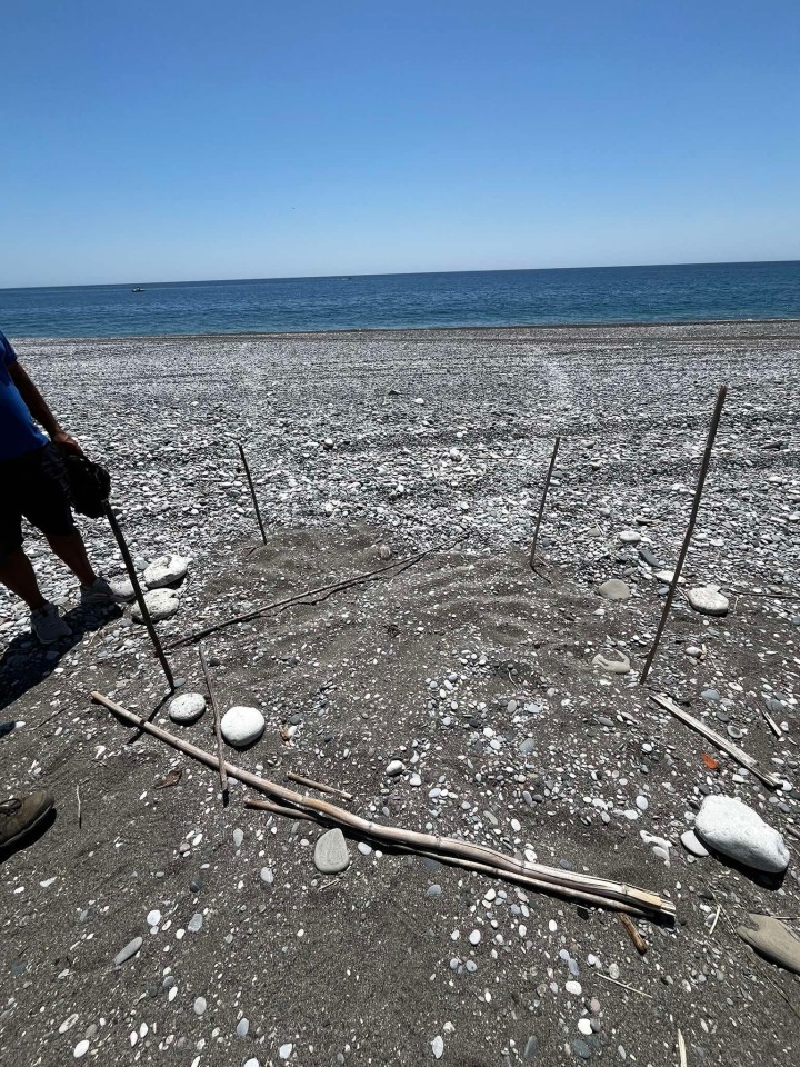 Η φωλιά περιφράχθηκε με ειδική σήμανση από τους επιστήμονες του Υδροβιολογικού Σταθμού και τα χελωνάκια περιμένουμε να εκκολαφθούν σε περίπου δύο μήνες.