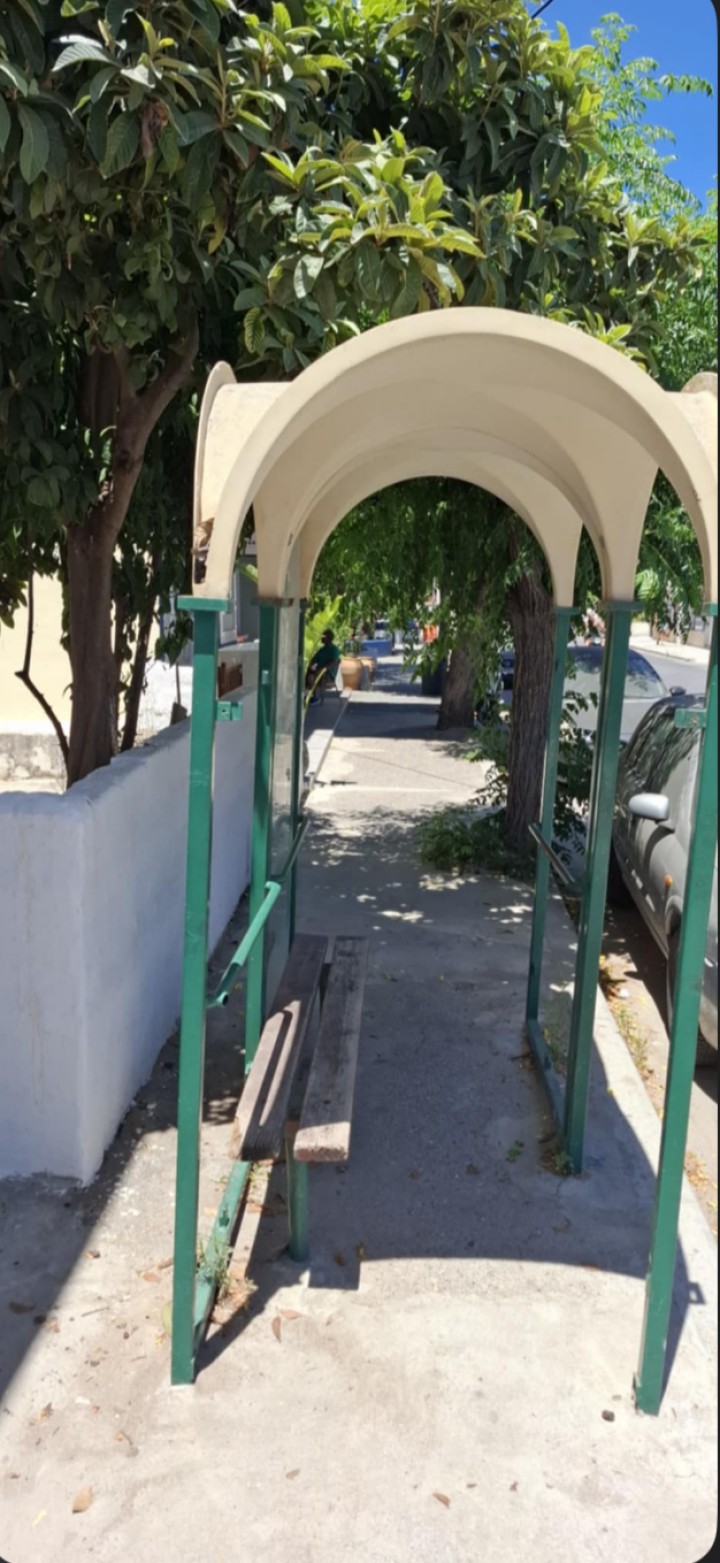 Καθώς περπατούσα λοιπόν χθες σε πεζοδρόμιο της πόλης με φίλο (ακαδημαϊκό δάσκαλο) και ω του θαύματος, εμφανίστηκε μπροστά μας μια στάση λεωφορείου (!) που πολύ απλά έπρεπε να περάσουμε εντός της (βλ. φωτό).