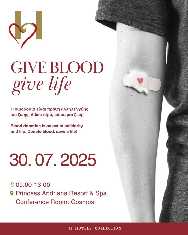 Ο Όμιλος H Hotels Collection στο πλαίσιο των δράσεων εταιρικής κοινωνικής ευθύνης έχει την τιμή να σας προσκαλέσει να συμμετάσχετε στην εθελοντική δράση αιμοδοσίας που διοργανώνει.