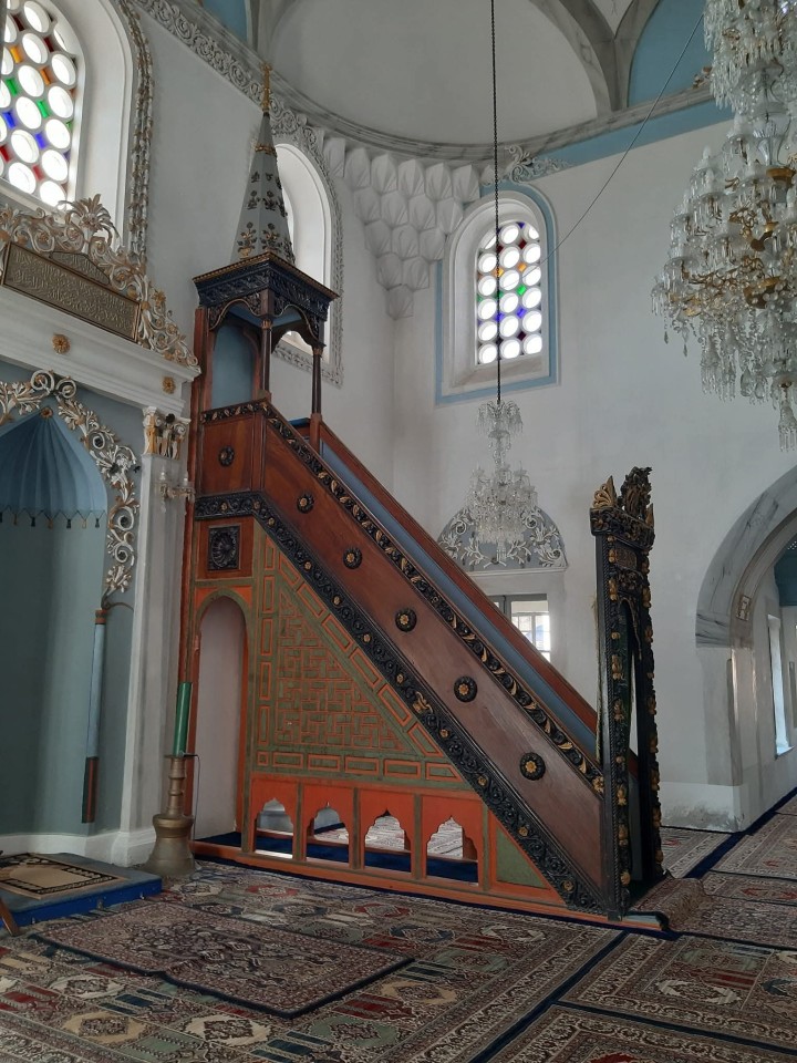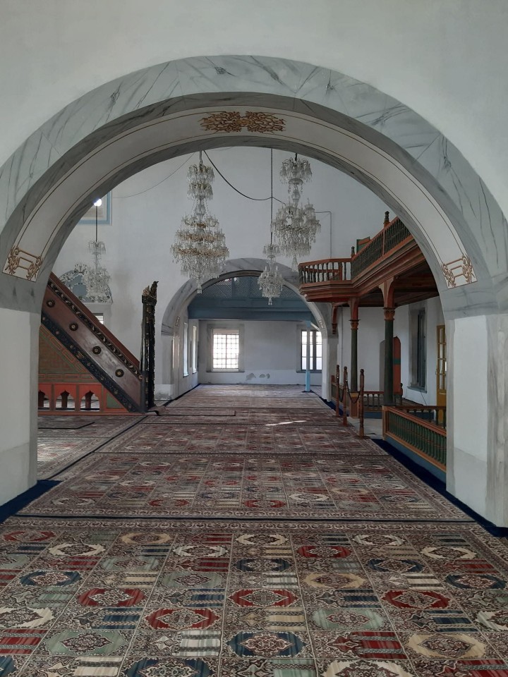 Εντυπωσιάζουν η συμμετρία στις όψεις του τζαμιού και η διάρθρωση στο εσωτερικό του, με τα ξύλινα στοιχεία των εξωστών και του άμβωνα, τα γραπτά και ανάγλυφα διακοσμητικά μοτίβα στην κόγχη προσευχής, τα παράθυρα και τους θόλους, τα χρωματιστά υαλοστάσια, τους πολυελαίους και τα πολύχρωμα χαλιά στα δάπεδα.