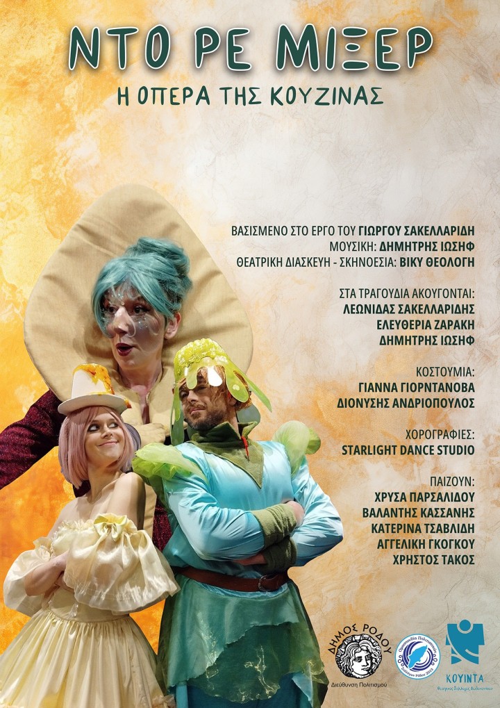 Στο παραμυθένιο σκηνικό της πιο γλυκιάς κουζίνας του Γλυκού Βασιλείου, όπου η μαγεία της γεύσης σμίγει με τη μελωδία της μουσικής, γεννιέται μια ξεχωριστή θεατρική εμπειρία που υπόσχεται να γοητεύσει μικρούς και μεγάλους θεατές: «Ντο-Ρε-Μίξερ – Η Όπερα της Κουζίνας».