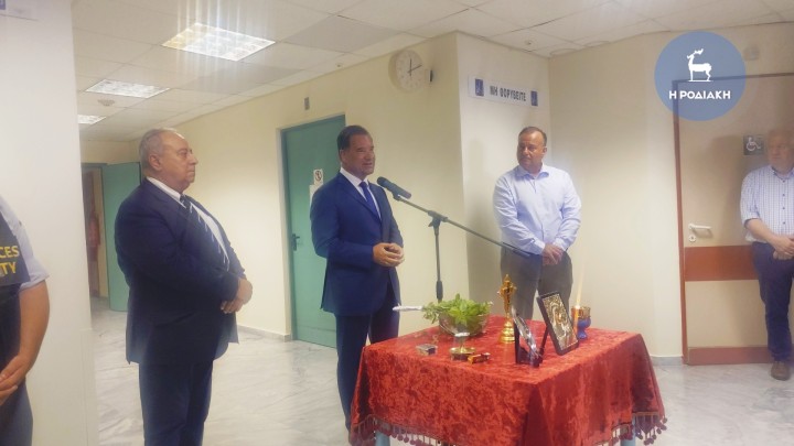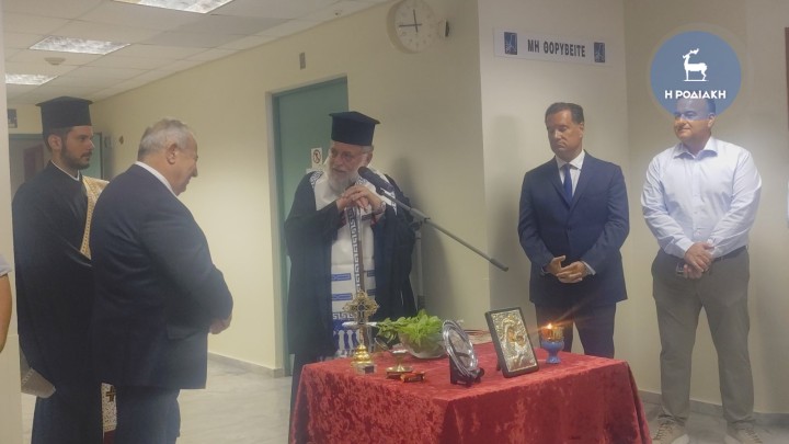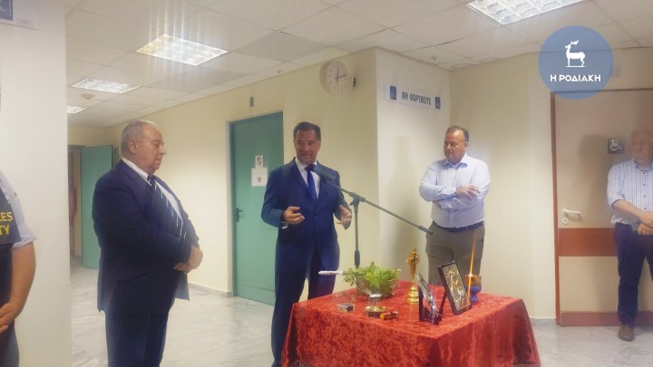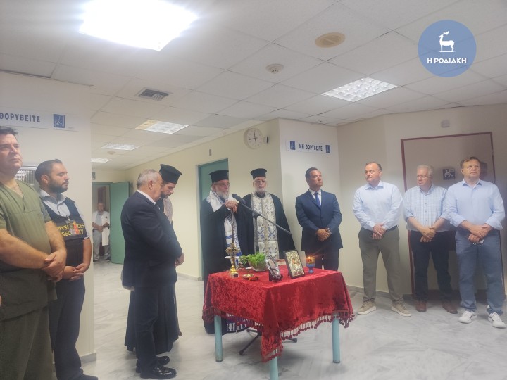 Τον αγιασμό τέλεσε ο Σεβασμιώτατος Μητροπολίτης Ρόδου, κ. Κύριλλος, ο οποίος εξέφρασε τη χαρά του που συνεχίζονται οι εργασίες για την αναβάθμιση του νοσοκομείου μας και ευχήθηκε να συνεχιστούν, διότι όλοι έχουμε «την επιθυμία και την αξίωση να έχουμε ένα καλό νοσοκομείο, το οποίο θα μπορεί να ανταποκρίνεται στις ανάγκες του τόπου μας».