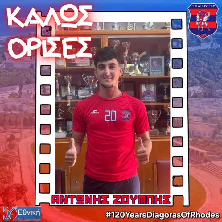 «Ο Γ.Σ. ΔΙΑΓΟΡΑΣ 1905 ανακοινώνει την απόκτηση του ποδοσφαιριστή Αντώνη Ζούμπη. Ο γεννημένος στην Ρόδο μεσοεπιθετικός έχει περάσει από την Κ17 του ΠΑΟΚ και την Κ19 της Καλλιθέας. Του ευχόμαστε καλή ποδοσφαιρική χρονιά με υγεία.»
