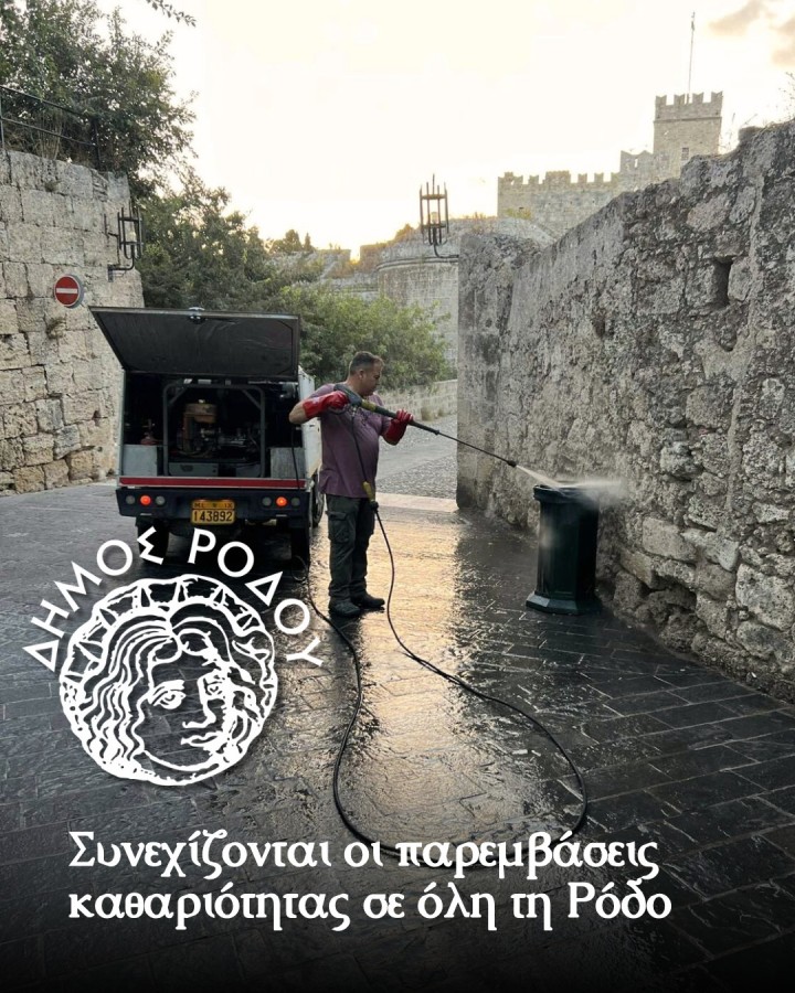 Έχουν ήδη ολοκληρωθεί - σημειώνεται- οι εργασίες στην Παλιά Πόλη (Μικρό & Μεγάλο Συντριβάνι, Πλατεία Αρίωνος, Πεζόδρομο «Καραβάκια») Εκατό Χουρμαδιές, Ακτή Κανάρη και Μιαούλη, στη Γρηγορίου Λαμπράκη, στη Νέα Αγορά (εξωτερικά & εσωτερικά), στην οδό Αποστόλου Παύλου (Ανάληψη), στη Μαραθώνος – Σμύρνης και Ατταβύρου στο Ροδίνι, στη Λαϊκή Αγορά του Ταξιάρχη, στους Αγίους Αποστόλους, στην Πλατεία Κύπρου, και στην οδό Καναδά. Ο Δήμος Ρόδου έχει προγραμματίσει και ξεκινήσει να υλοποιεί πρόγραμμα πλύσεων κοινόχρηστων χώρων, πλατειών και δρόμων, χρησιμοποιώντας πιεστικό μηχάνημα και μηχανικό σάρωθρο, σε όλα τα χωριά του νησιού. Το πρόγραμμα έχει σχεδιαστεί ώστε κάθε περιοχή να εξυπηρετείται τακτικά, εξασφαλίζοντας ισότιμη καθαριότητα και φροντίδα σε όλες τις Δημοτικές Ενότητες.Συνεχίζουμε καθημερινά τις παρεμβάσεις μας για μια πιο καθαρή και όμορφη Ρόδο!